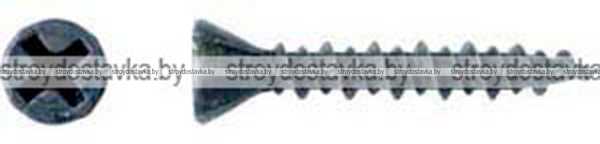 Саморезы по ГВЛ или по гипсоволоконным плитам имеет достаточно интересную двух заходную структуру резьбы, между витками с крупной резьбой проходят витки более мелкой резьбы. Такая конструктивная особенность обусловлена с целью более надежного и прочного крепления. Голова у этого вида саморезов в потай, под биту PH-2.