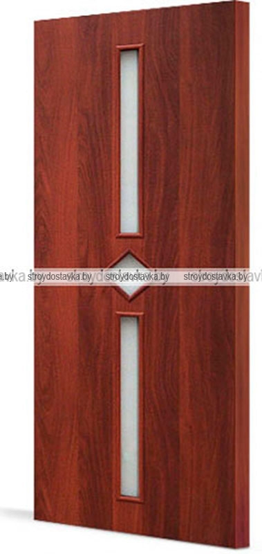 Дверь межкомнатная выполнена с остеклением. Облицовка межкомнатной двери выполнена с двух сторон из ламинированной МДФ, отделанной синтетическим лаком. Каркас межкомнатной двери изготавливается из переклеенного массива хвойных пород дерева. Ламинированные межкомнатные двери удобны в уходе и обращении, гораздо лучше подвергаются чистке. Качественные ламинированные двери обладают высокими противопожарными свойствами. Ламинированные двери по внешнему виду мало отличаются от дверей, отделанных натуральным шпоном. С учетом всех этих факторов, межкомнатные ламинированные двери могут стать лучшим решением при небольшом семейном бюджете. Габаритные размеры межкомнатной двери: 600/700/800/900 х 2000 (мм). Толщина межкомнатной двери: 40 (мм).