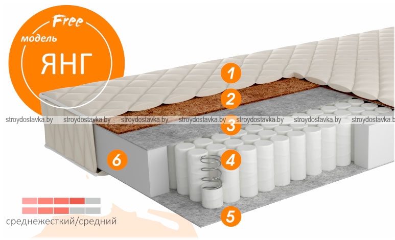 Асимметричный матрас на основе блока независимых пружин, который равномерно распределяет вес тела, снимает нагрузку с позвоночника и способствует правильному положению спины во время сна. С одной стороны используется кокосовое волокно, которое придает матрасу жесткость. С другой стороны «FiberTerm», что придает матрасу среднюю жесткость и оптимальный уровень комфорта.