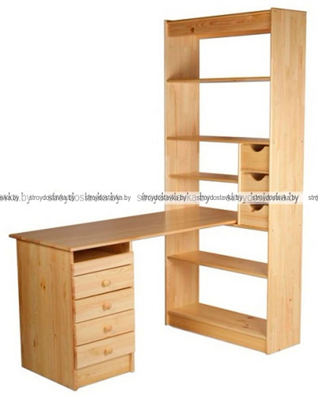 Отличный и удобный вариант для работы со стеллажом и столом "Генрих". Модель предназначена для людей, которые ценят свое время. Ведь грамотно оформленное рабочее место влияет на продуктивность и качество работы. Стеллаж "Генрих" поможет разместить все документы и книги по своим местам. За таким столом - работа только в удовольствие. Стеллаж со столом "Генрих" МД 194 изготавливается из массива сосны, покрытого бесцветным лаком, на заказ изготавливается в белом воске.На заказ изготавливается в крашении: белое масло, серое масло, орех, либо комбинации цветов.