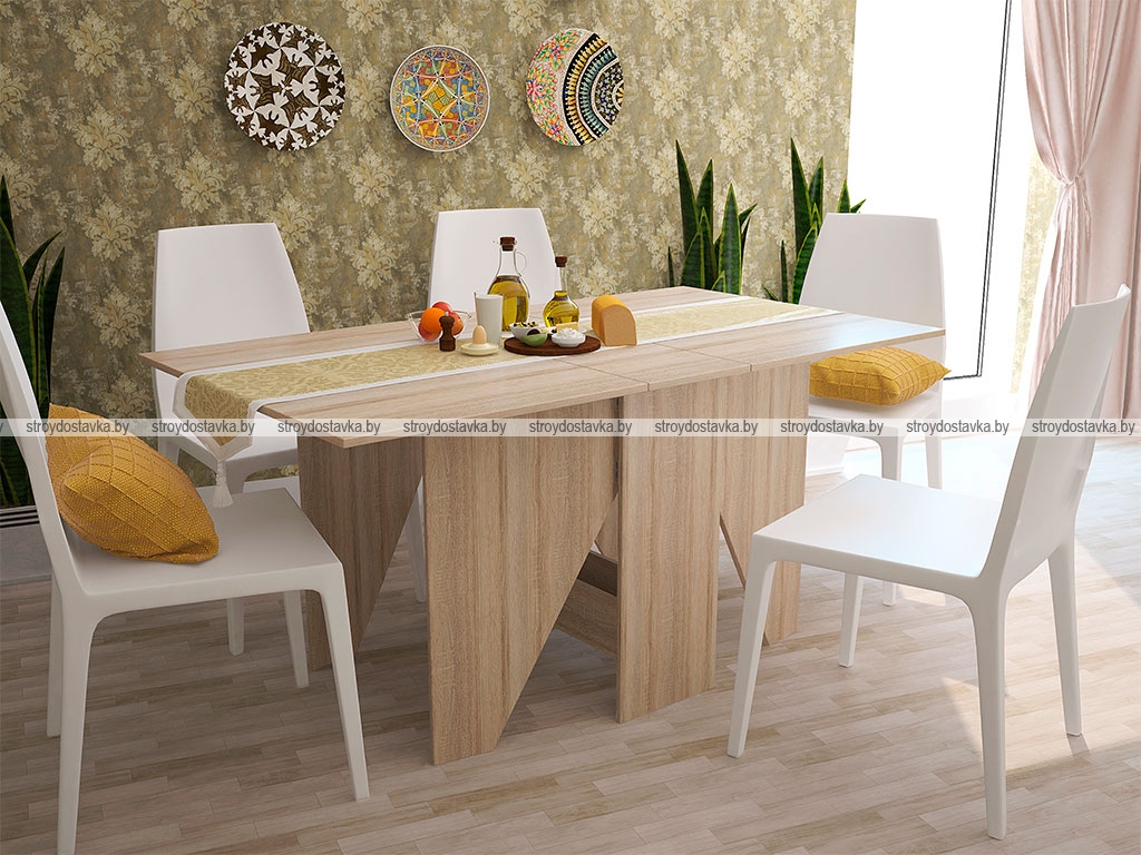 В обычные дни стол-тумба не занимает много места, может использоваться как тумбочка под телевизор и т.д. В праздники же за такими столом соберется большая компания родных и друзей, и не придется ломать голову, куда всех рассадить.