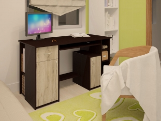 Компьютерный стол СК-006 доступен в нескольких цветовых вариантах. Для обустройства офисного пространства рекомендуем приобретать модель в цветовом сочетании − дуб молочный/венге. Такой дизайн придаст помещению солидность, строгость и настроит на рабочий процесс. Стол гармонично впишется в мужскую комнату.