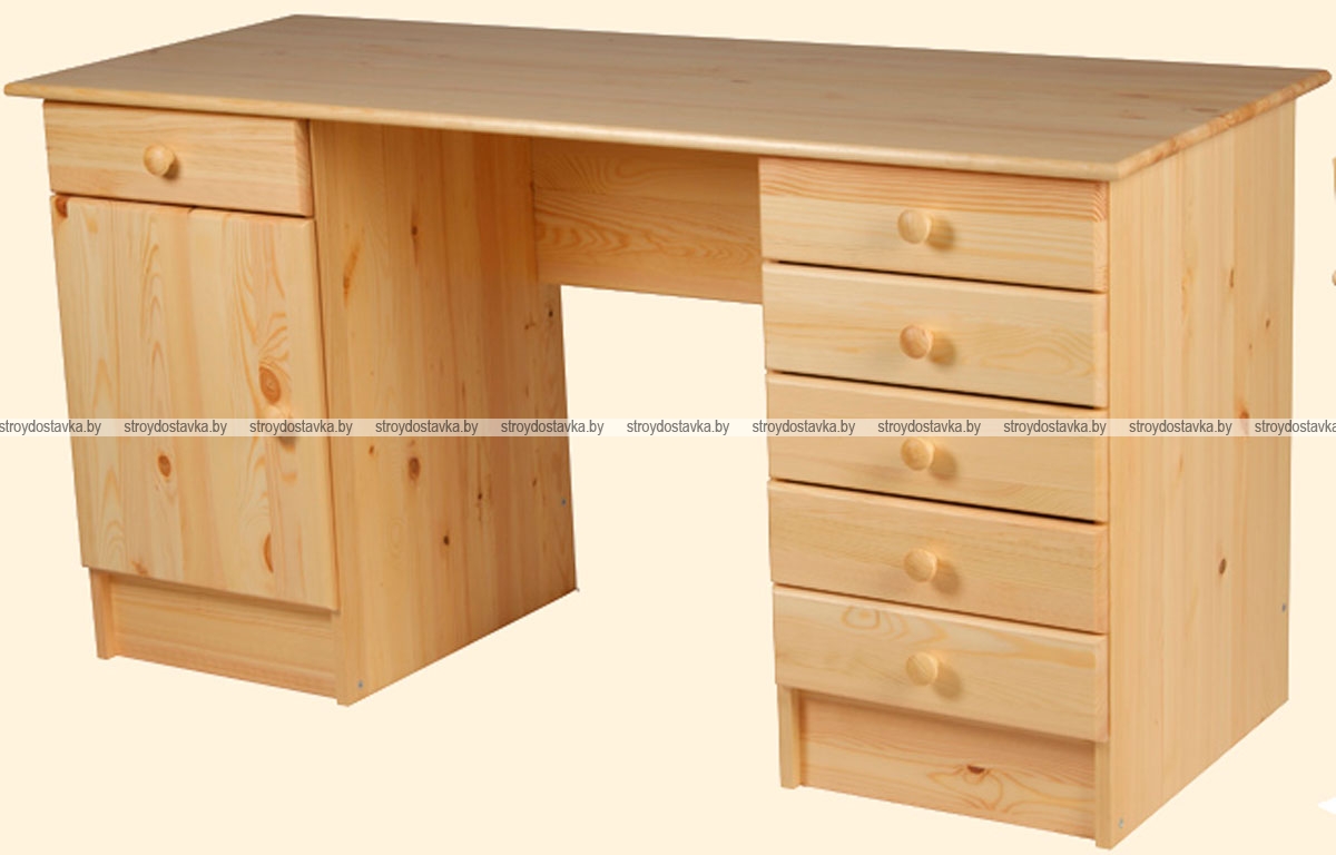 Двухтумбовый письменный стол СД-101 МД 117 очень благородно смотрится со стороны. Наличие выдвижных ящиков делает стол практичным и функциональным, теперь все документы будут на своем месте. Стол письменный СД-101 МД 117 изготавливается из массива сосны, покрытого бесцветным лаком или в белом воске. На заказ изготавливается в крашении: белое масло, серое масло, орех, либо комбинации цветов.